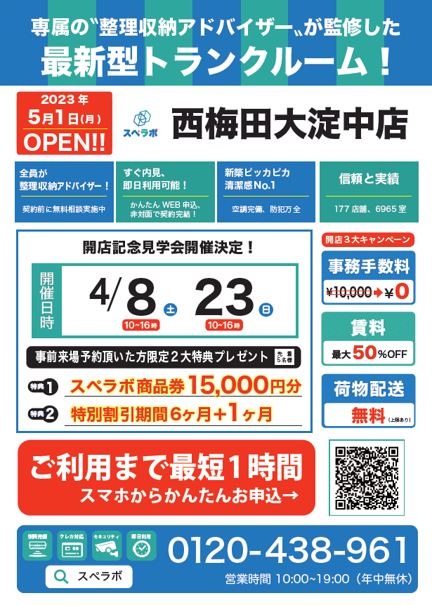 【西梅田大淀中店/5月1日(月)オープン】見学から契約、解約まで完全非接触・非対面、お申し込みからご利用まで最短1時間!都内、大阪などにて絶賛運営中のトランクルーム【スペラボ】が副町駅近くに出店!
