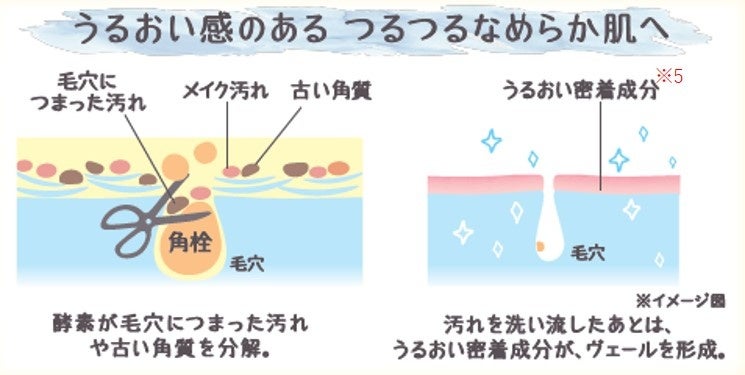 酵素※1の力で、蓄積した毛穴の黒ずみや角栓を分解し、瞬時につるつるとしたなめらか肌へ。