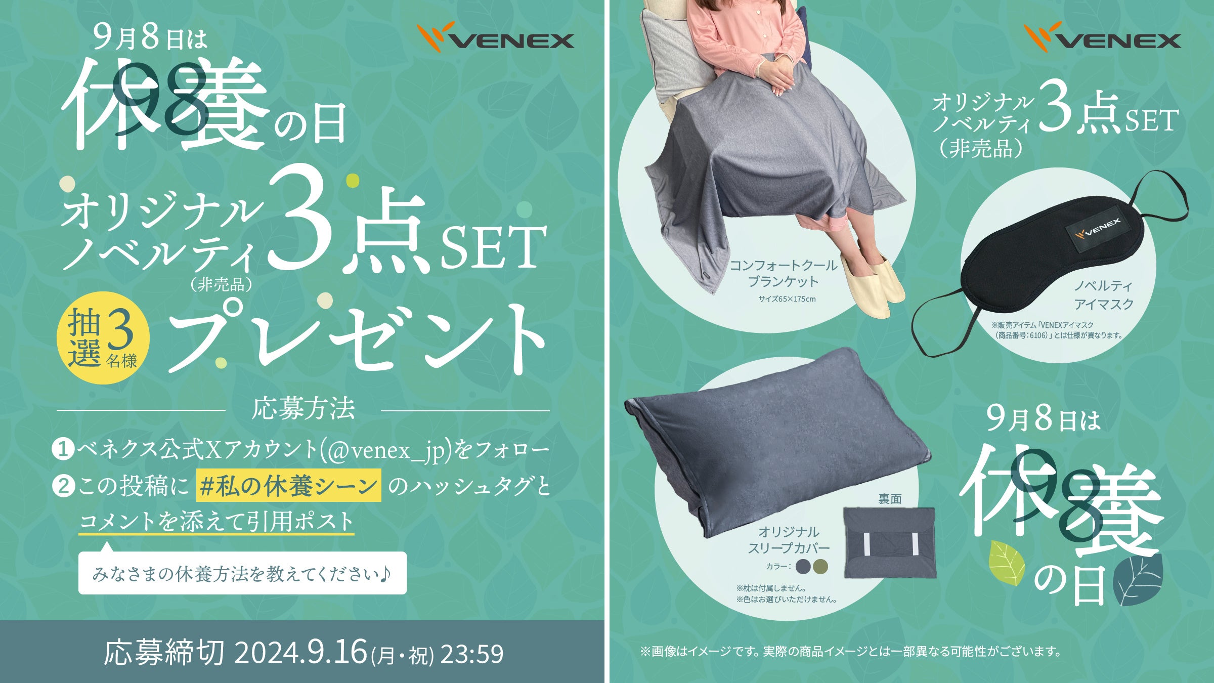 ◆当選賞品:抽選で3名様に、ベネクスオリジナルの『コンフォートクール ブランケット』、『ノベルティアイマスク』、『スリープカバー』の3点セットをプレゼントいたします。