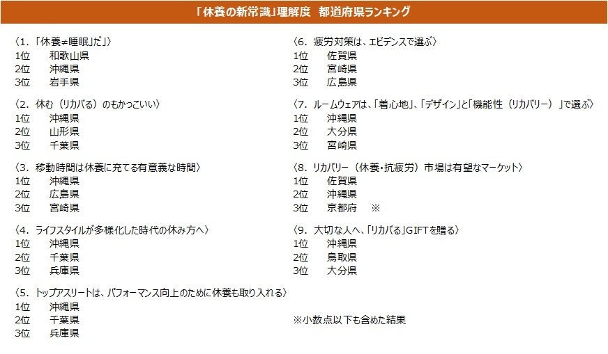 8項目でTOP5に入ったのは沖縄県。「休養」の重要性について理解が進んでいることが明らかに