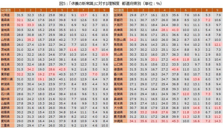 ※図5内、各項目TOP5の都道府県を赤く色付けしています。