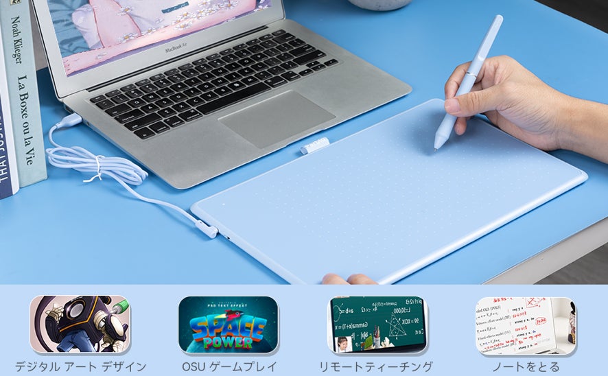 傾き検知機能付き、8192段階の筆圧感度によって、描画中の精度を向上させ、太い線でも細い線でも正確に識別できます。