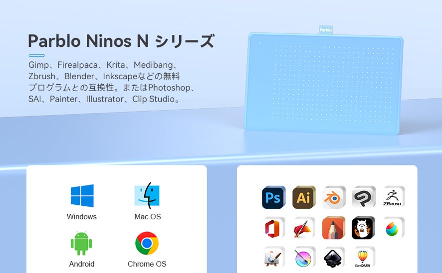 2022年5月に新発売されたエントリーモデルペンタブレットParblo Ninos Nシーリズは、誰でもペンタブレットを試してみえるために、10月4日まで半額キャンペーンを開催いたします。