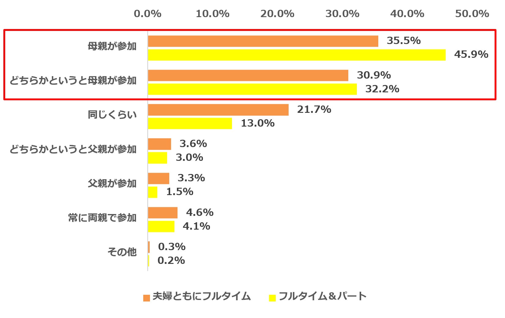 共働き家庭の学校行事への参加は、7割以上が母親と回答