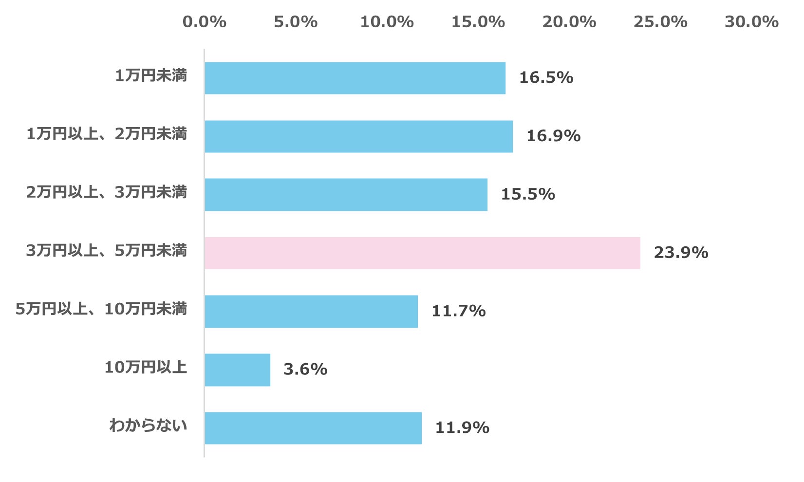 共働き家庭の毎月の平均教育費、最多回答は「3万円以上、5万円未満」