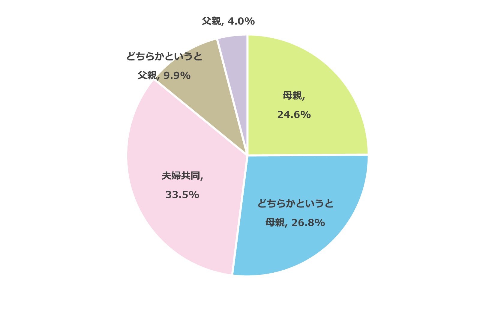 この結果から、共働き家庭の半数以上で、子どもの教育方針を母親が決めていることがわかりました。