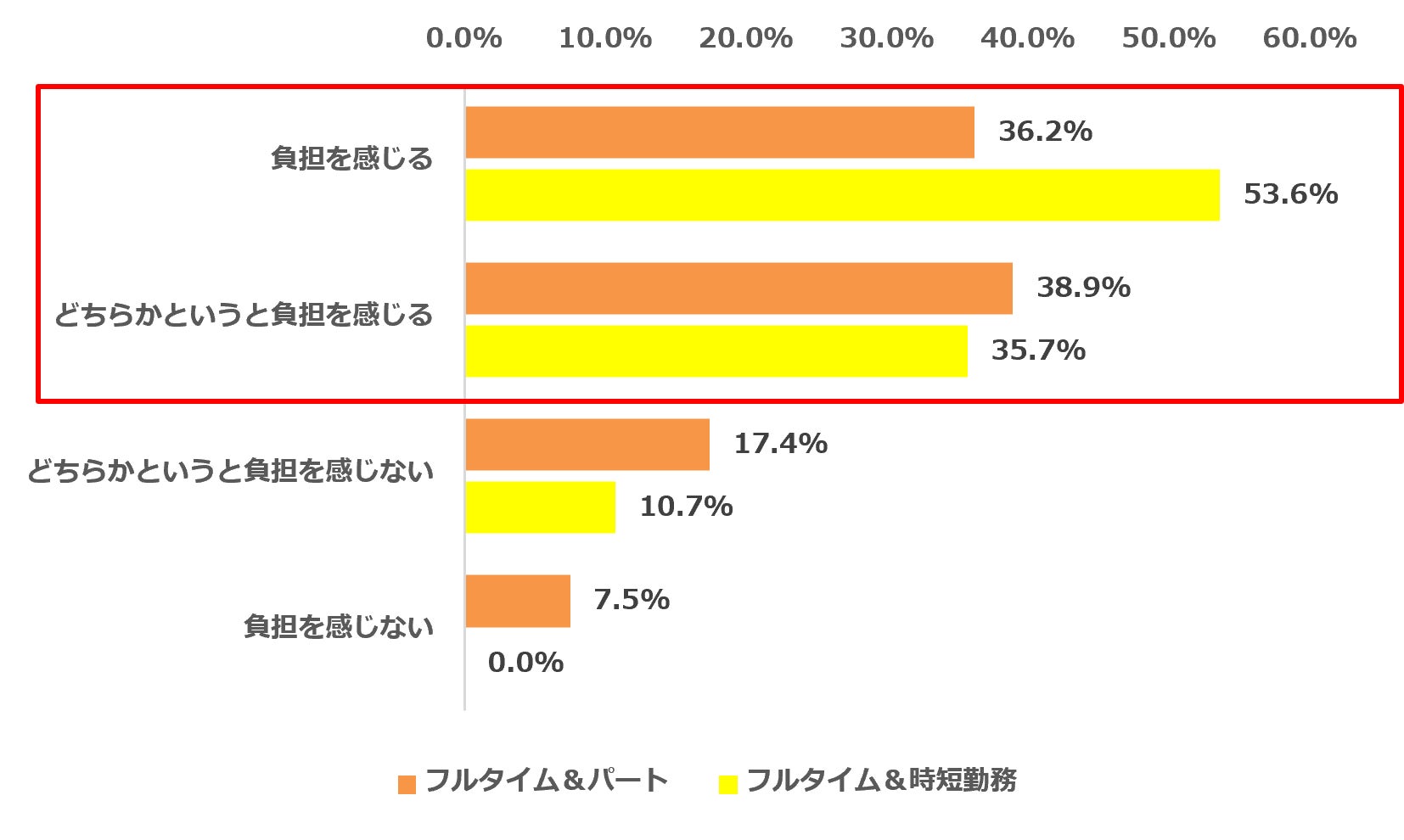 【参考情報】「フルタイム&パートの夫婦」より、「フルタイム&時短勤務の夫婦」の方が、教育費用に経済的な負担を感じている割合が高い