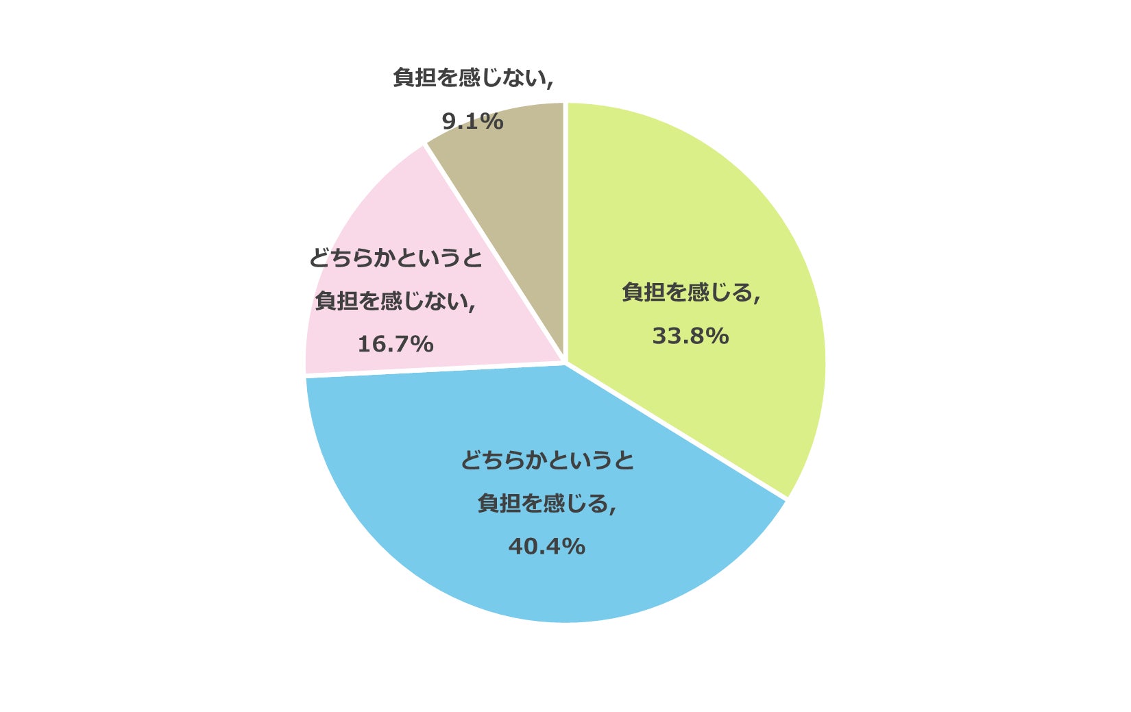 子どもの教育費に経済的な負担を感じるか質問しました。その結果、74.2%が「負担を感じる」(負担を感じる:33.8%、どちらかというと負担を感じる:40.4%)と回答しました。