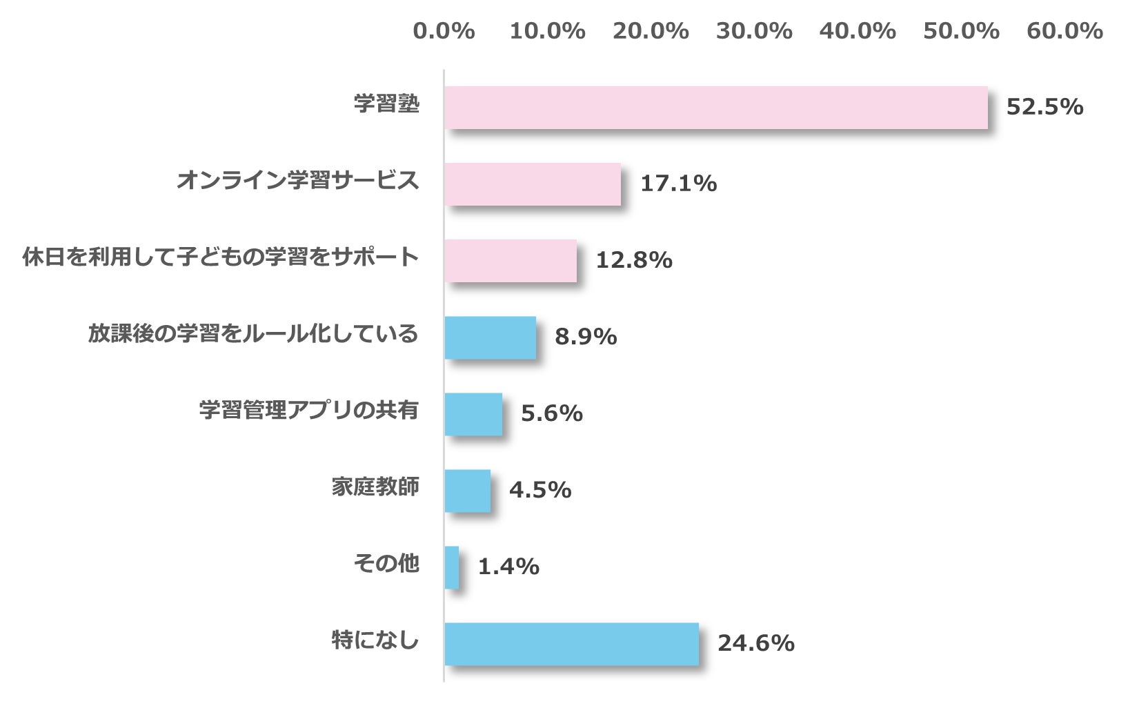 ・共働き家庭の学力向上のための対策、5割以上が「学習塾」と回答