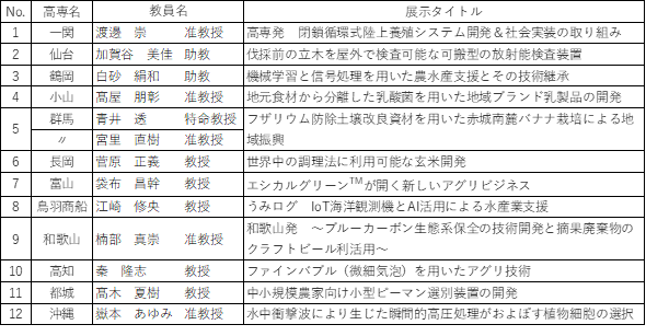 ■出展一覧(高専機構ブース 小間番号:総-18)