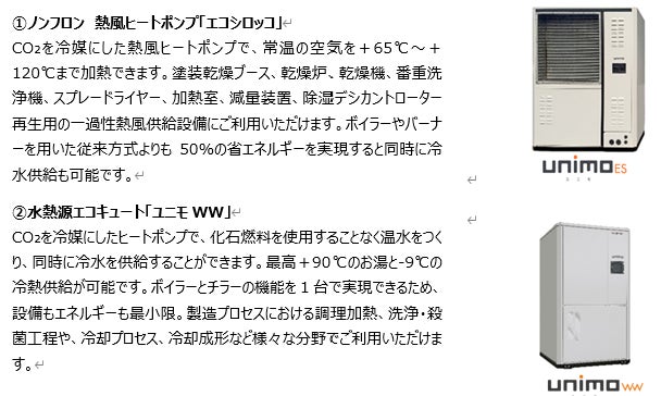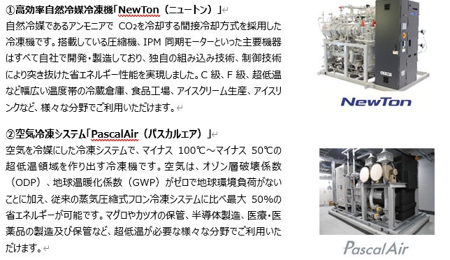 産業用冷凍機、ヒートポンプ、各種ガスコンプレッサーの開発・製造・販売 食品加工機械等の開発・製造・販売 上記に付帯する装置・システムの開発・製造・販売 食品・物流等各種プラントの設計・施工・メンテナンスおよび改良工事 |