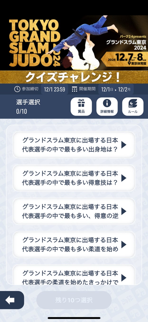 『パーク24presentsグランドスラム東京2024』に出場する日本代表選手や大会のことをクイズチャレンジで知ることができる内容、大会をより楽しむために予習!