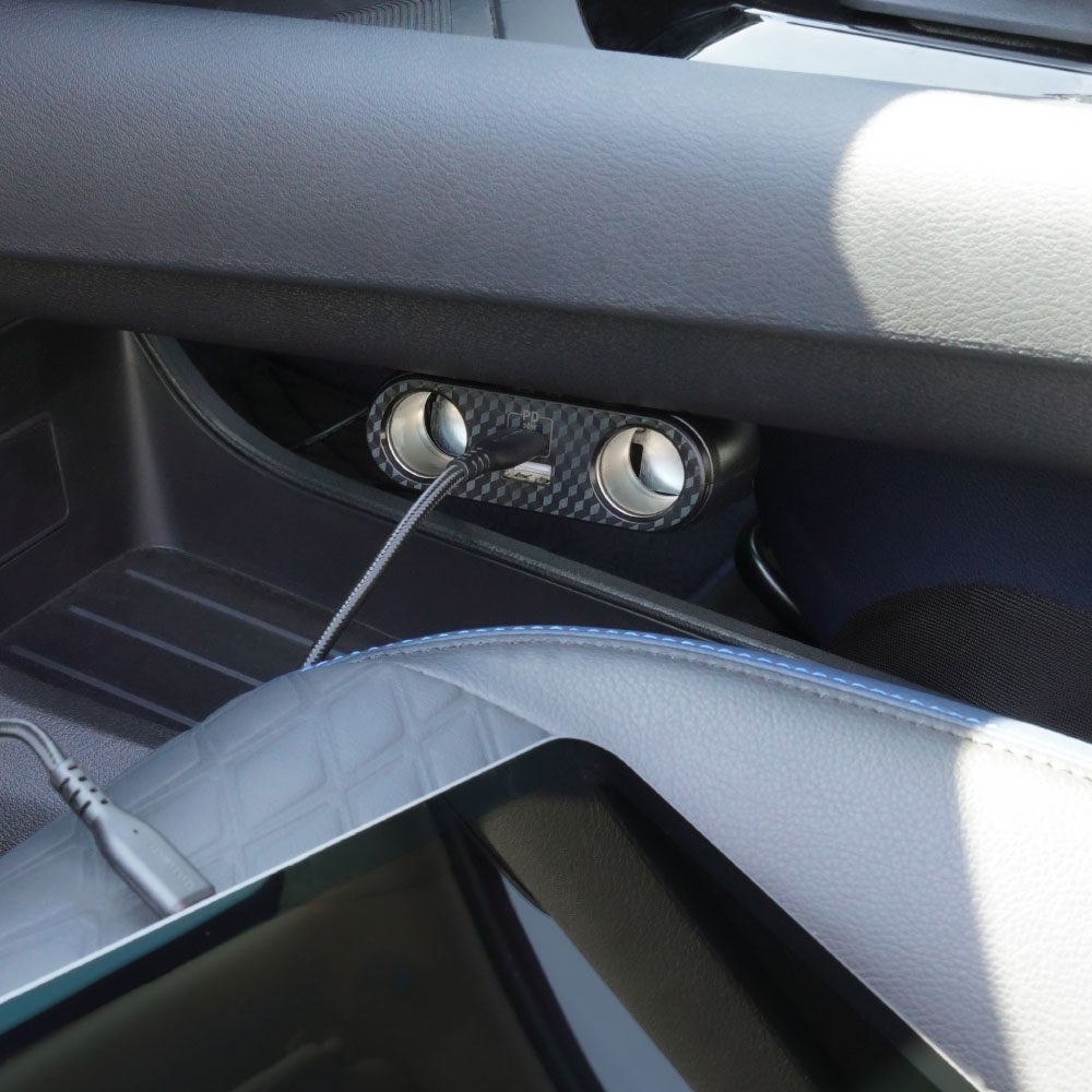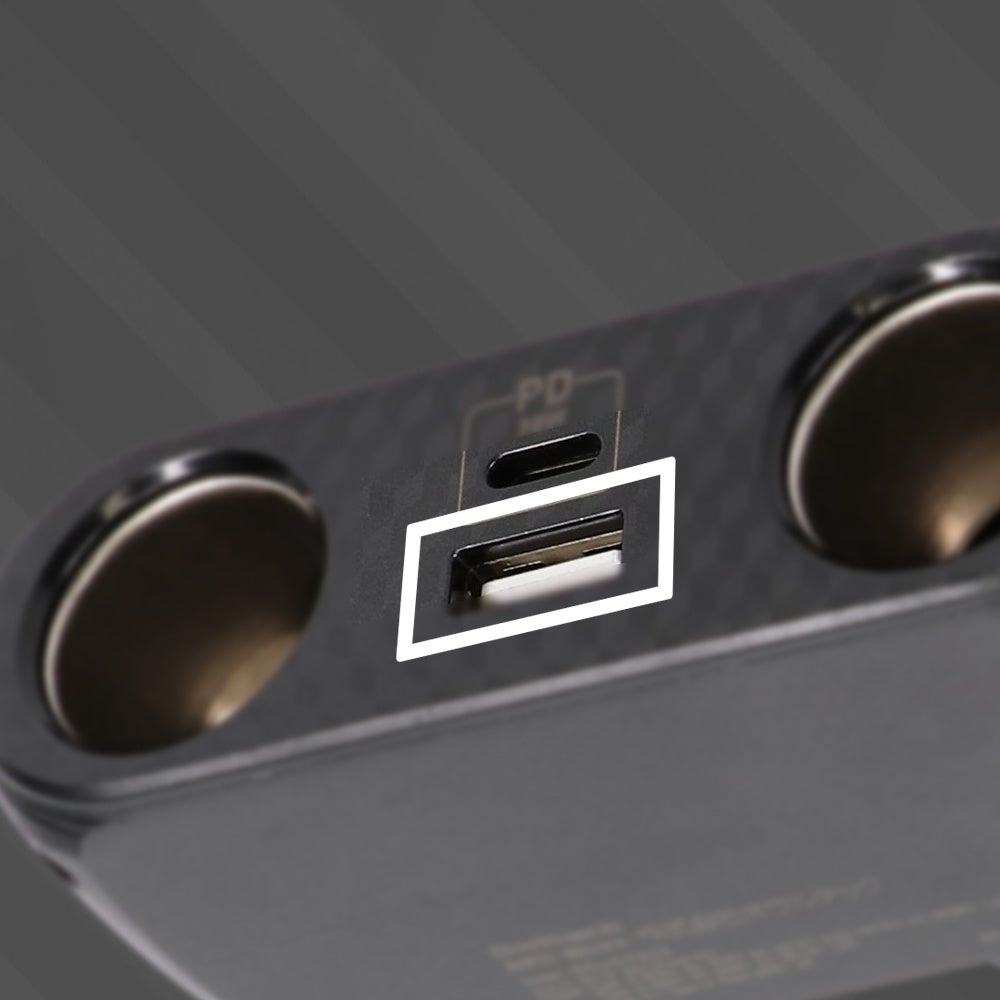 USB Type-Cポートを1基、USB Type-Aポートを1基、アクセサリーソケットを2基増設でき、スマートフォンの充電からドライブレコーダーへの給電などにお使いいただけます。