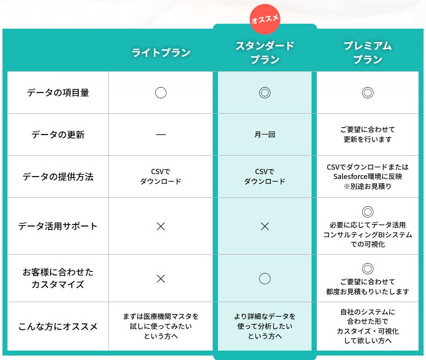 ※これまで既に無料プランや有料プランをご契約いただいていたお客さまは特に対応は必要ございません。今後も、時代に合わせてお客さまのニーズに沿った医療データのご提供が出来るように、日々邁進して参ります。