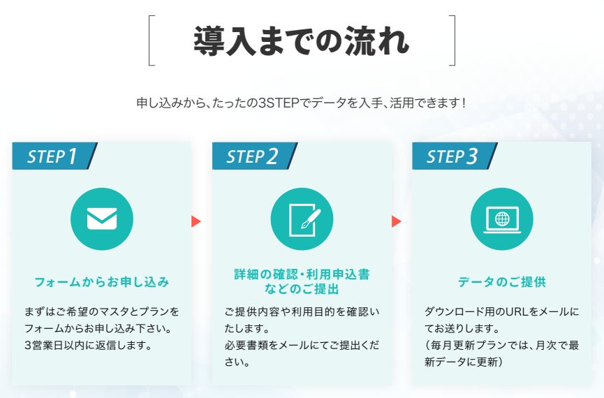 ※提供に際しまして、利用申込書をご提出いただいております。受け取り確認後、すぐに提供開始いたします。