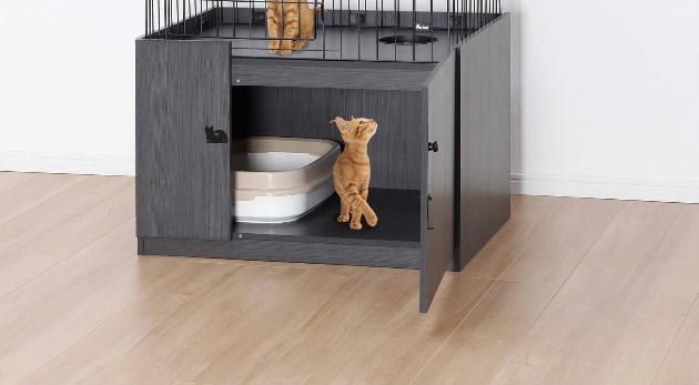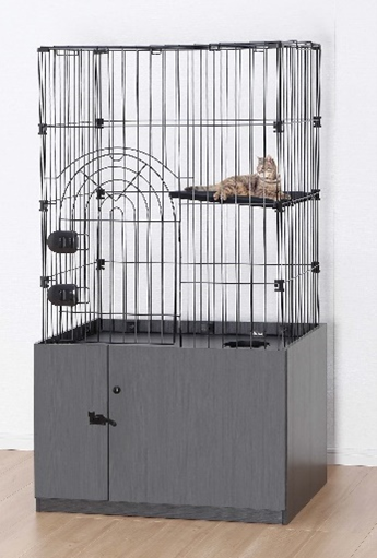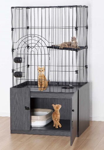 ケージの下にボックス型のパーソナルスペースがついたキャットケージ。ボックス内に、猫用トイレも収納可能。