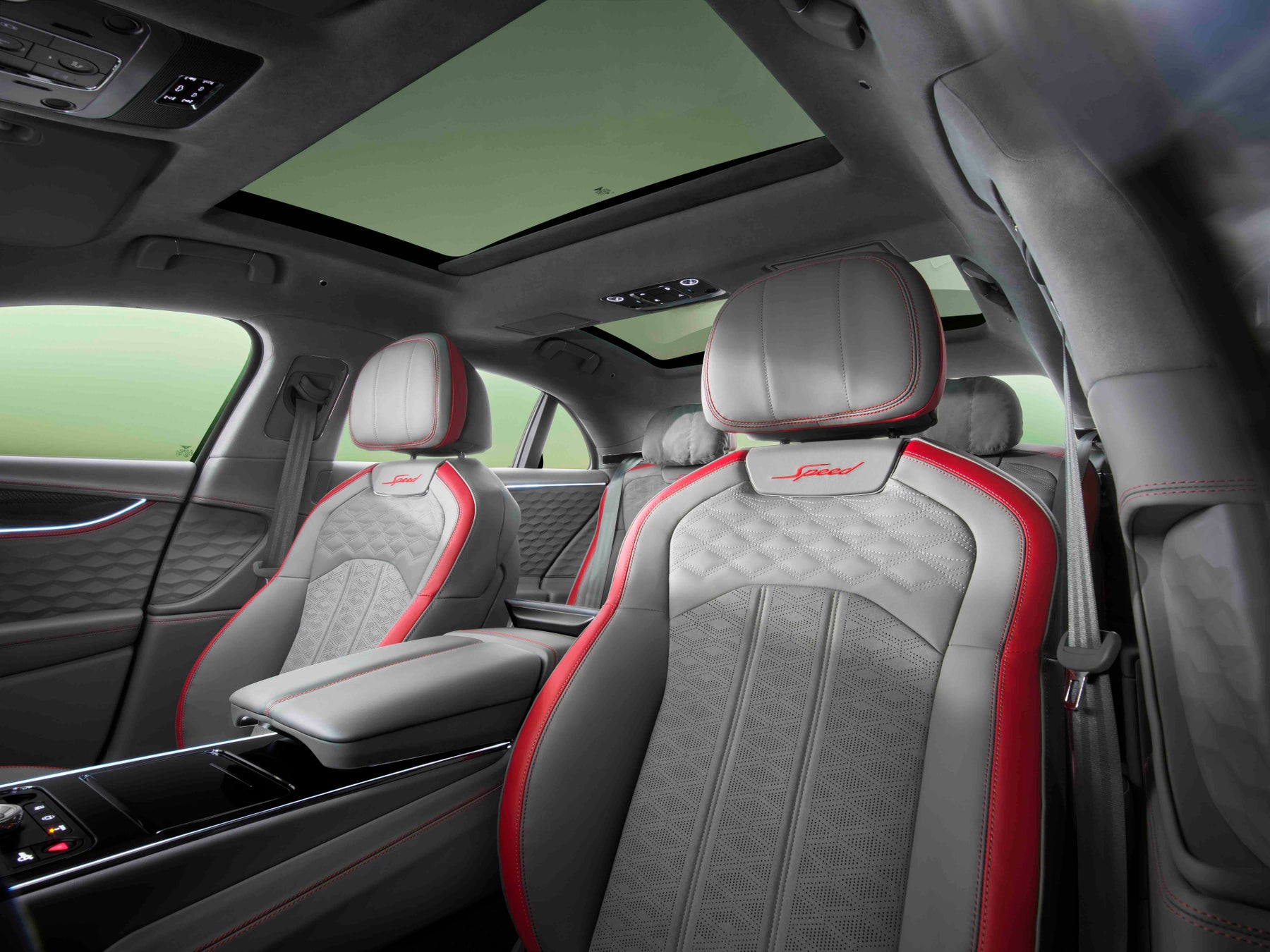 新型フライングスパー スピードは、最新のデザイン改良によってより際立っています。グラファイト仕上げのブライトウェアが、エクステリアにスポーティで技術的な印象を与え、新しいスピード専用のグリル、フロントバンパー、リアディフューザーが新鮮で力強い外観を創出しています。スタイリングスペシフィケーションのエアロパッケージはボディカラーで仕上げられており、オーナーはカーボンファイバー仕上げも選択することが可能です。
