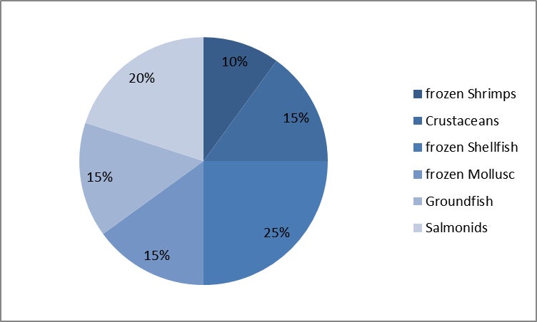 回答: 調査によると、ペットフードは冷凍エビ (10%)、甲殻類 (15%)、冷凍甲殻類 (25%)、冷凍軟体動物 (15%)、グラウンドフィッシュ (15%)、サケ類 (20%) に分類されます。冷凍貝類の需要は、その貴重な食料源、高い栄養価、およびビタミン E、ビタミン B6、ナイアシン、消化しやすいタンパク質などの必須栄養素のためにも増加しています。サーモンの需要の高まりは、寿司やサーモンを使ったサラダの人気が高まっていることにも起因しています。