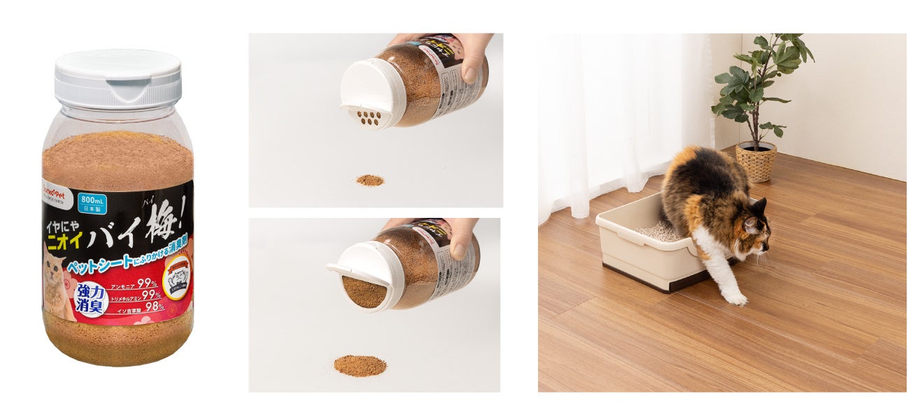 Sanko Petから初の猫専用商品!トイレ用ふりかけ消臭剤「イヤにゃニオイバイ梅!」を新発売