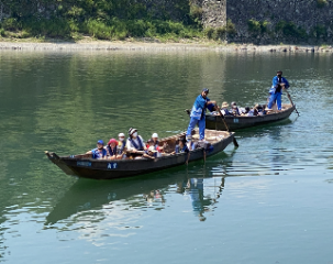 人吉城址の石垣を間近で眺めることができ、秋は紅葉が見どころとなります。まさに人吉の四季を感じることができる風情ある遊覧体験です。