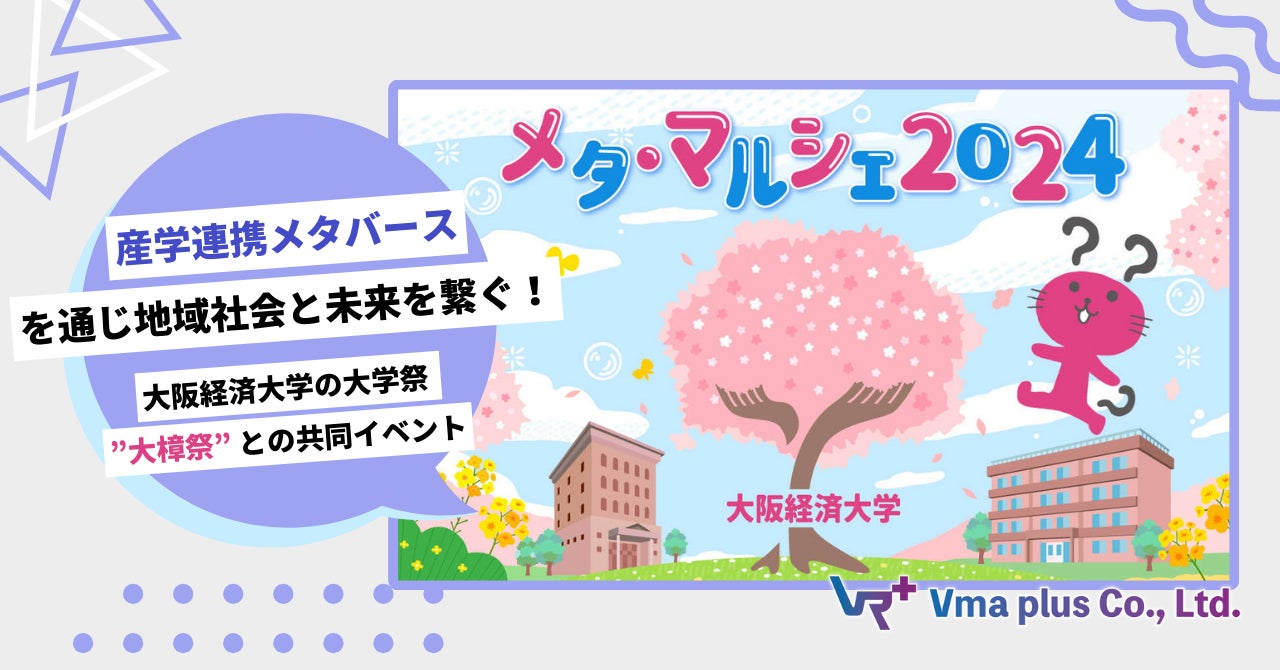 メタバースWeb3のコンテンツ企画・ディレクションを行うVma plus(ブイマプラス)株式会社(本社:東京都品川区、代表:津田徹、以下「Vma plus」)は、大阪経済大学 (学⻑:山本俊一郎、所在:大阪市東淀川区)と共に立ち上げた産学連携メタバースプロジェクトの第2弾として、10月25日(金)~10月27日(日)にかけて行われる大学祭「大樟祭(おおくすさい)」において、メタバースを活用した共同イベント「メタ・マルシェ2024」を開催いたします。