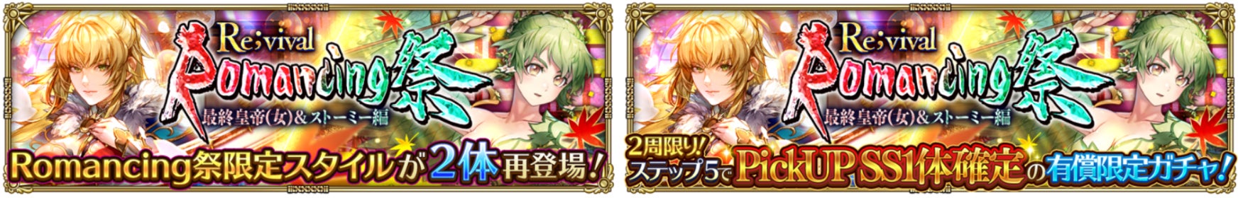 Romancing祭限定スタイルの中から2つのスタイルが再登場&Pick UPした「Romancing祭Re;vival 最終皇帝(女)&ストーミー編」を開催いたします。