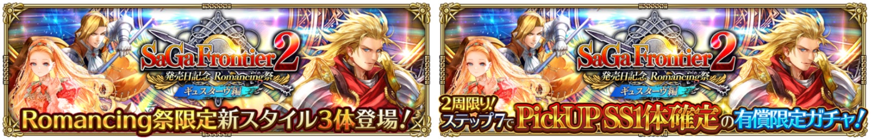 新ガチャ「サガ フロンティア2発売日記念 Romancing祭 ギュスターヴ編」を開催いたします。