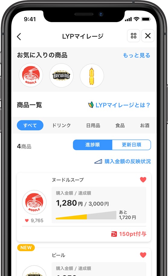 商品ごとの購入金額に応じた特典がもらえる「LYPマイレージ」を利用することで、ユーザーはオフラインとオンラインの垣根を越えて、飲料や日用品などのさまざまな商品を買えば買うほどお得に買い物ができます。