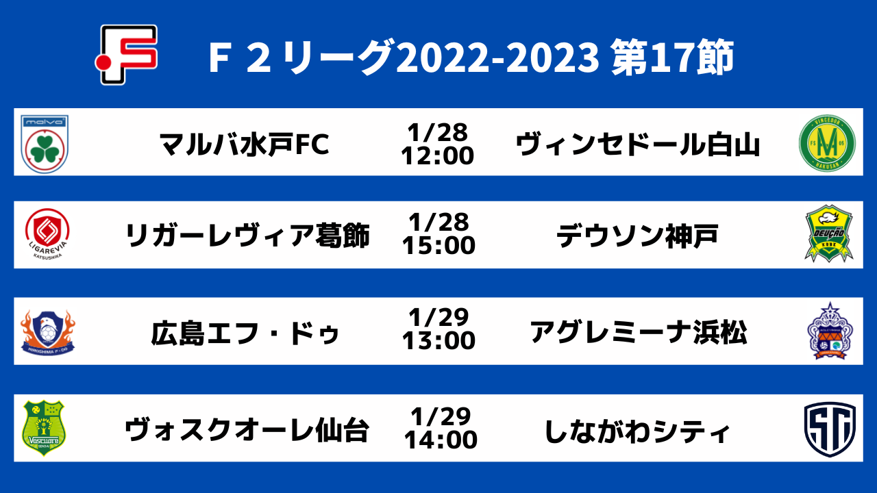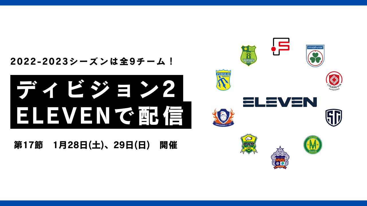 1月28日(土)、29日(日)に開催するFリーグ2022-2023 ディビジョン2 第17節の4試合を以下の通り、ELEVENにてライブ配信いたします!全試合を無料でご視聴いただけますので、ELEVENのアプリをダウンロードいただき、ぜひご視聴ください!