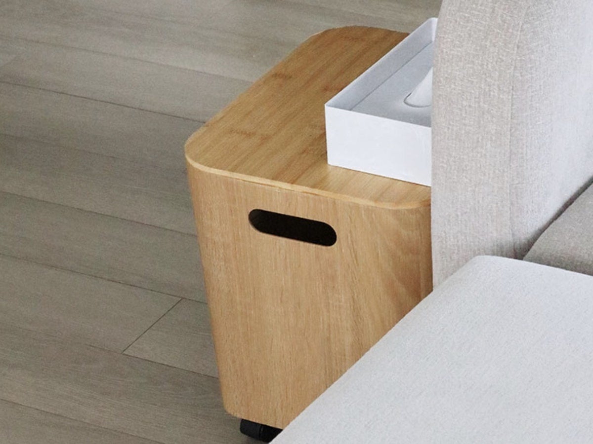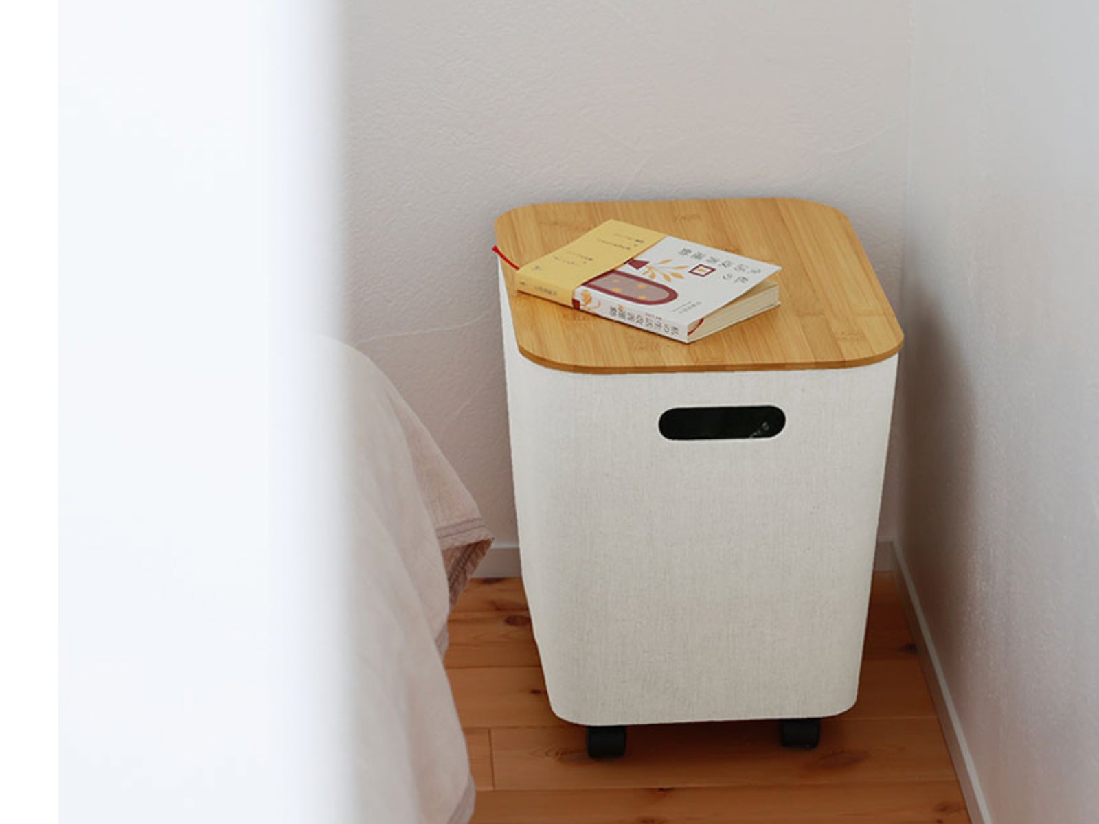 素材はインテリアに馴染むバンブー素材を採用。キャスター付き収納で展開中の「ファブリック調」にも「木目調」にもマッチして、それでいて重さや扱いやすさも◎の素材です。