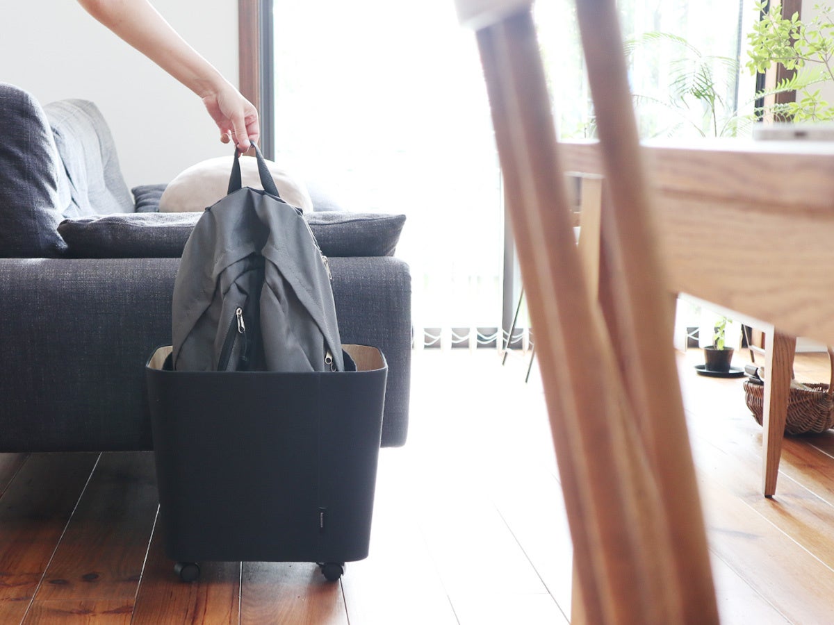 バッグがすっぽり入るサイズ感だから、玄関やリビングで帰宅後のバッグの定位置として◎。