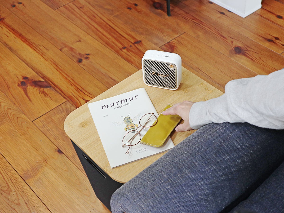 天板のようにフラットなかたちだから、サイドテーブルとして使うことも。ソファ横でコーヒーを置いたり、読みかけの本を置いたり・・・そんな「ちょい置き」にはぴったりなサイズ感です。