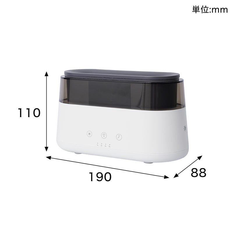 ・加湿タイマー/1h/2h/3h/6h ・加湿性能/約3~15ml/h ・噴霧方法/超音波式