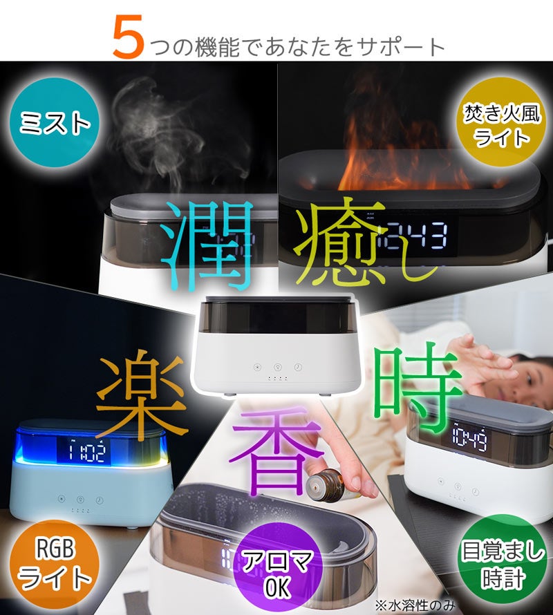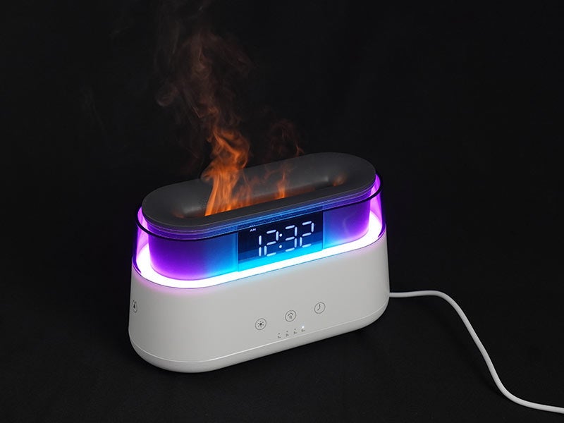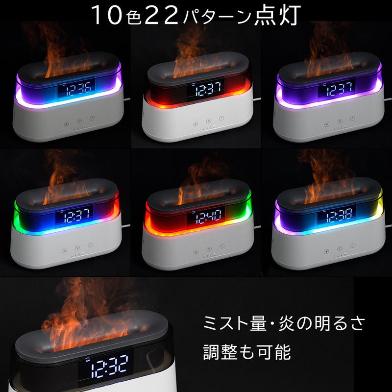 燃えない火で癒される グラデーションLED、目覚まし機能付きの加湿器