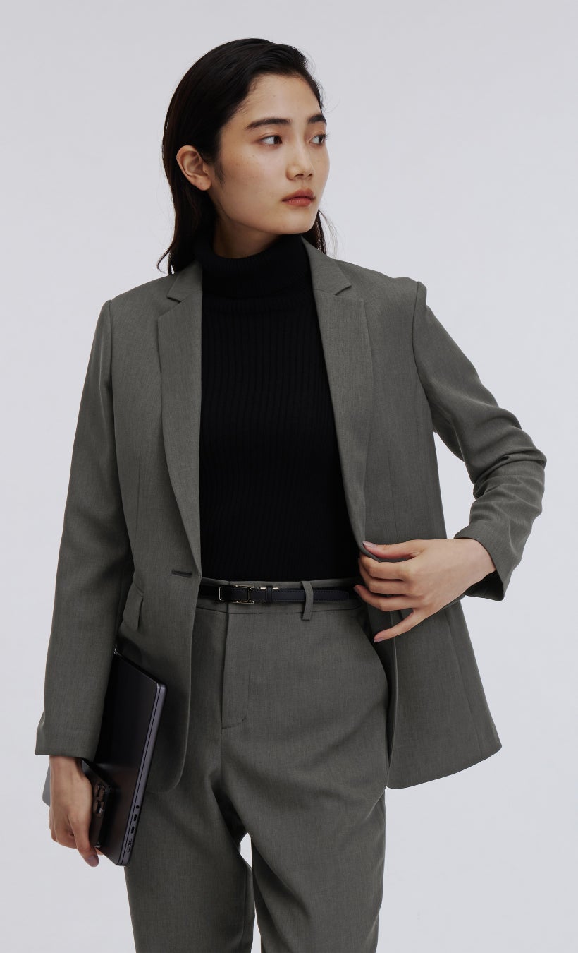 昨今の働き方の多様化により、仕事着と普段着の垣根が低くなりつつある中で、手軽に扱えてカジュアルスタイルなどにも使い回ししやすいスーツが話題となっています。コロナ禍においては、機能的で手ごろな価格の衣料品も増えたことから、上下で税込10,000円を下回る価格の機能性セットアップスーツ「ゼロプレッシャースーツ」の販売を2021年夏に開始。また、レディス市場では、昨今の多様化するウエアリングや女性活躍推進の影響もあり、様々な価格帯のセットアップスーツが販売されています。レディススタイルでも、ウールなどのカッチリとしたスーツ需要が高まっている一方で、お客様からは機能的でコスパに優れたスーツが欲しいとの声も上がっており、2024年3月に「ゼロプレッシャースーツ」のレディススタイルの取り扱いを開始しました。