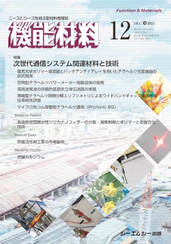 化学・エレクトロニクスなどの技術・市場動向レポート発行を行う、株式会社シーエムシー出版(本社:東京都千代田区、代表:金森洋平)は、雑誌『月刊機能材料2024年12月号』を12月7日に発売します。今回の特集は「次世代通信システムの最新動向」です。伝送損失の低減化やテラヘルツ波帯吸収材料など実用化に向け研究開発が進められる技術・材料についての開発動向を詳解いたします。