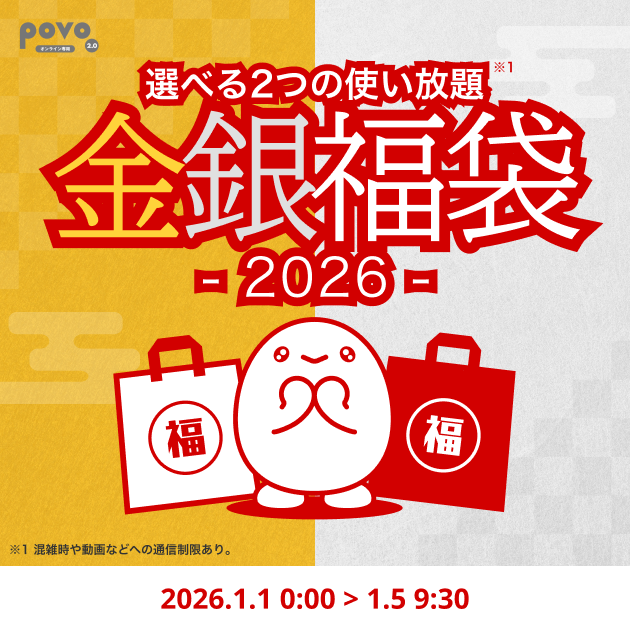 povo、「2026年 初売り」で福袋2種とpovoガチャ おみくじを期間限定提供
