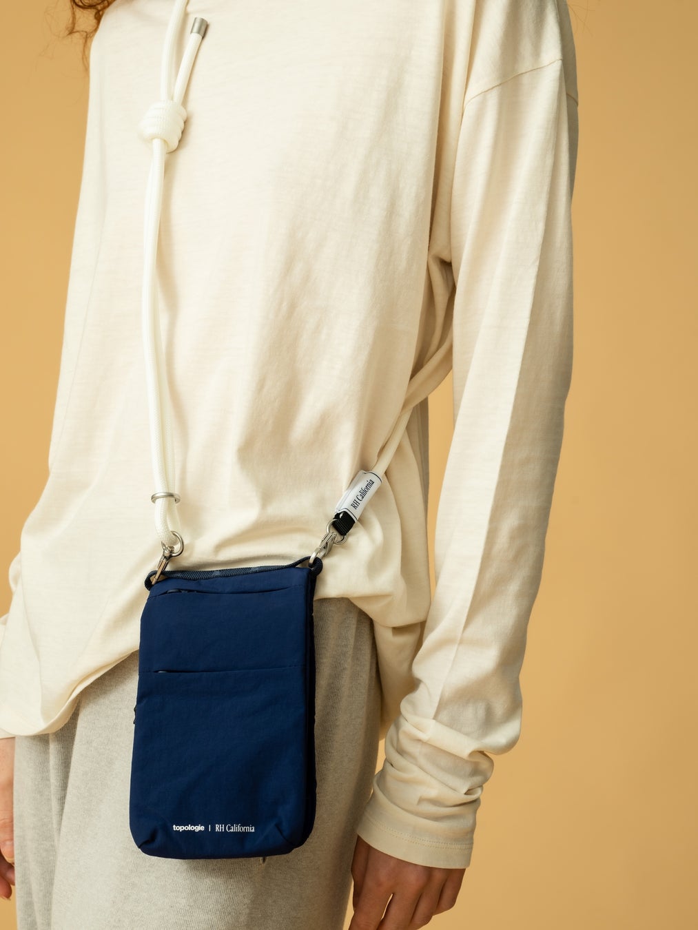 第三弾となるTopologieとのコラボレーションは、ブランドベストセラーのサコッシュ4型をロンハーマンオリジナルカラーのネイビーで製作しました。ストラップはサコッシュと相性の良い8mmを採用し、こちらもロンハーマンだけの特別なカラーとなるソリッドカラーのネイビー、ホワイトの2色展開。ストラップのネームには「TODAY IS BEAUTIFUL」の特別なメッセージが入っています。