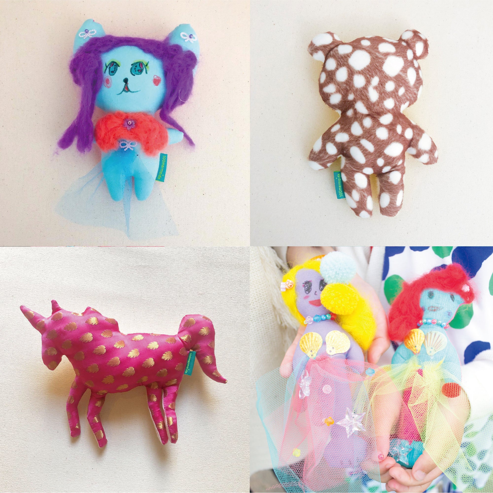 『こども心』+『つくる』+『あつまる』から生まれる何かおもしろいこと、自由な空気を大切にした、ぬいぐるみワークショップ。様々な形のぬいぐるみボディなかからお好きなボディを選び、ペンで描いたり、フェルトやビーズ、スパンコール、毛糸などを施したりして、じぶんだけのぬいぐるみをつくることができる!捨てるに捨てられない洋服やボタン、リボンなど、材料の持ち込みも歓迎!