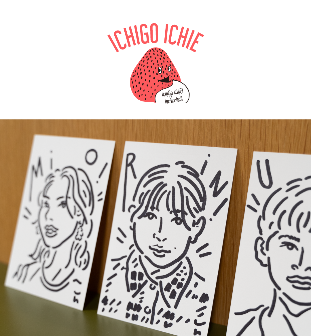 苺が一枚、一期一会の気持ちで似顔絵を描く「苺一絵」。マジック一本で描くシンプルでポップなタッチはSNSのアイコンとしてもオススメ。写真からでもOK!(当日受付となります)