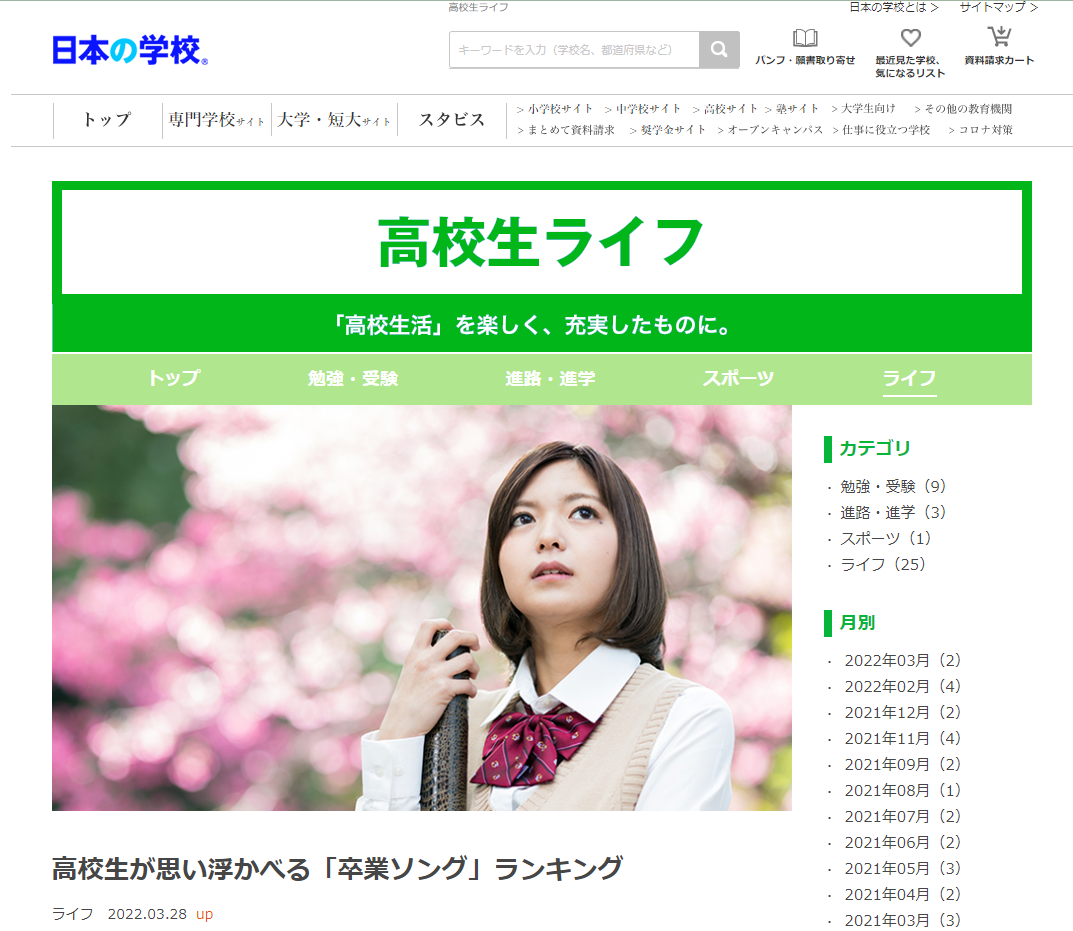 高校生ライフ「高校生が思い浮かべる「卒業ソング」ランキング」:https://school.js88.com/koukousei/life/39