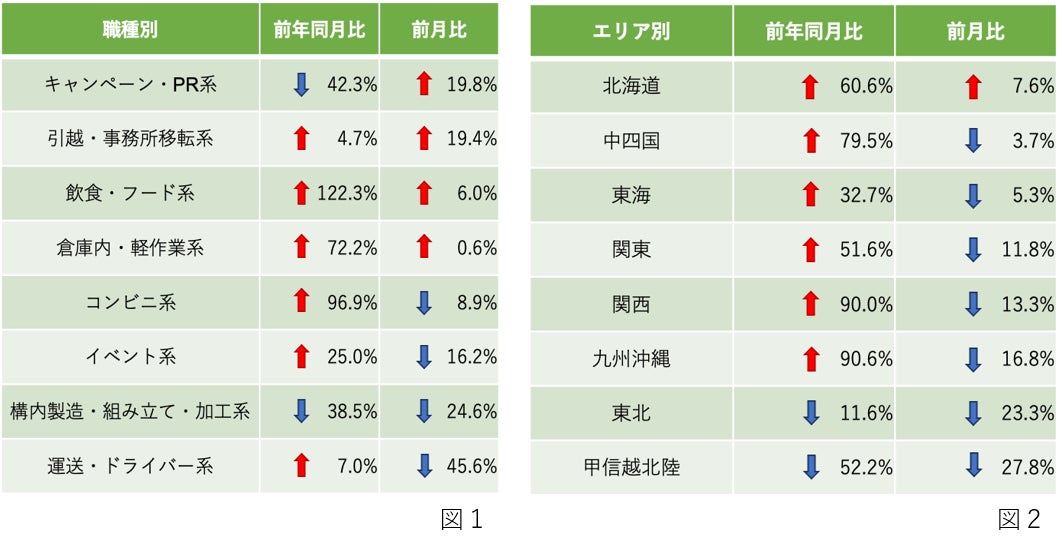 【職種別】「飲食・フード系」「倉庫内・軽作業系」が前年同月比で大きく増加