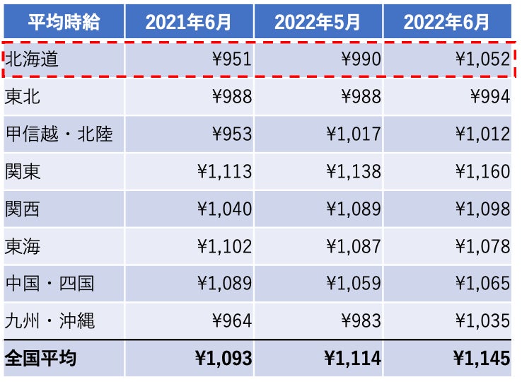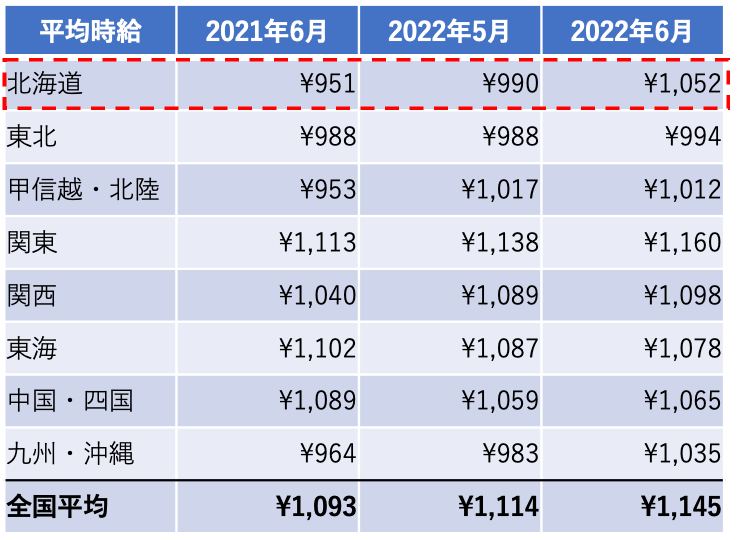 全国平均時給は、前年同月比、前月比でともに増加しています。