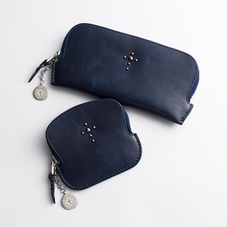 大人カジュアルで人気のアパレルブランドDOPE&DRAKKARから、深いマリンブルーレザーお財布が登場。サイドとファスナーのツラを合わせた貝のようなユニークな形。馬革仕立てで、独特の経年変化も見ものです。
