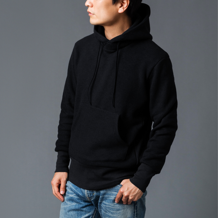 フードが崩れず美シルエットをキープする究極のパーカー。藤巻別注品のなかでも人気の商品に、ついにブラックが登場します。ZIPパーカーとプルオーバーの2仕様展開。また、高貴で強運の紋「二引き」の刺繍がフードの下にはさりげなく入っているところがなんとも粋でカッコいい。