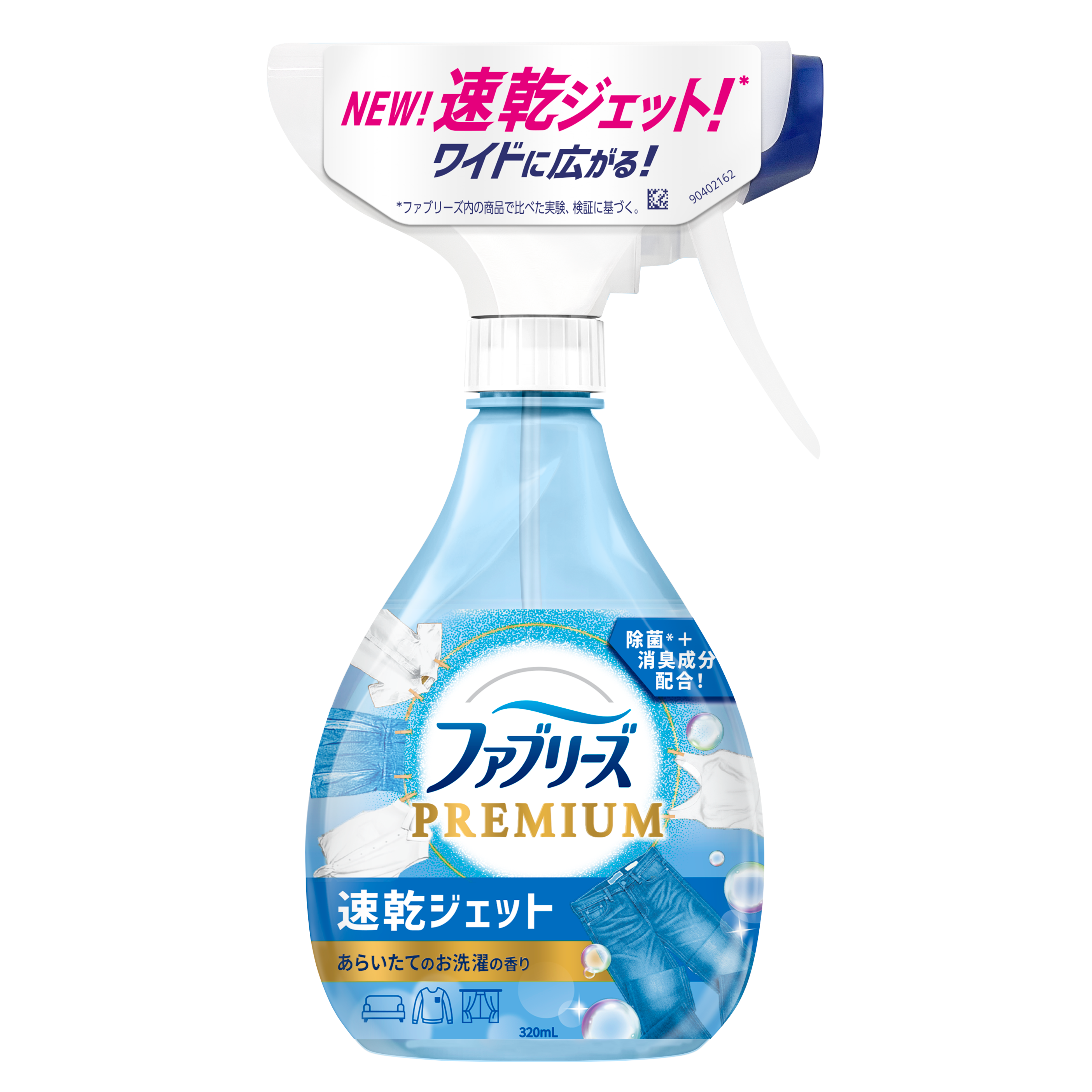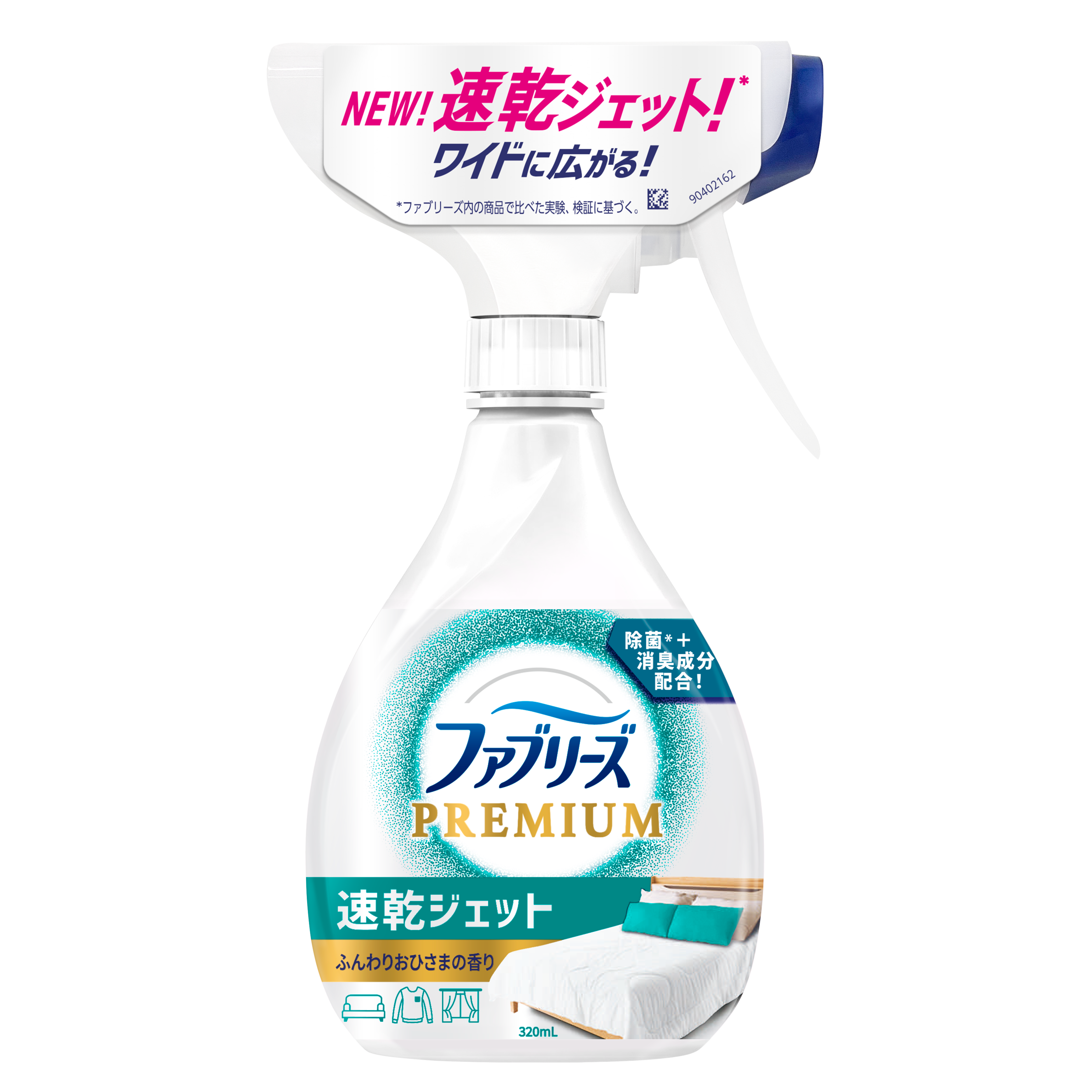 「ファブリーズ 速乾ジェット」は従来の「ファブリーズ W除菌+消臭」と比べてミストの粒子の直径が約半分の大きさになり、従来製品と比べて約20%早く乾く*3ようになりました。さらに、連続してスプレーすることが可能になり、従来製品のミストと比べて広い範囲に噴射できます。そして、新処方により、超微細ミストでも強力な消臭力を実現します。ソファーやマットレスなど消臭してすぐに使いたい大きなアイテムでも、ラクに消臭でき、従来製品と比べてスプレーしたアイテムをより早く使用することができます。