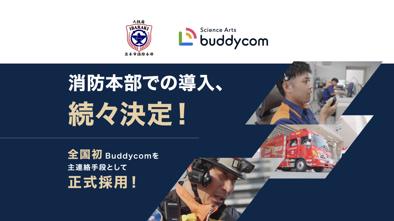 株式会社サイエンスアーツ(所在地:東京都渋谷区、代表取締役社長:平岡 秀一)は、茨木市消防本部が、業務のデジタル化と現場連携の強化を目的として、全国の消防本部として初めて、フロントラインワーカーをつなげるライブコミュニケーションプラットフォーム「Buddycom(バディコム)」を、主連絡手段として正式採用したことをお知らせいたします。