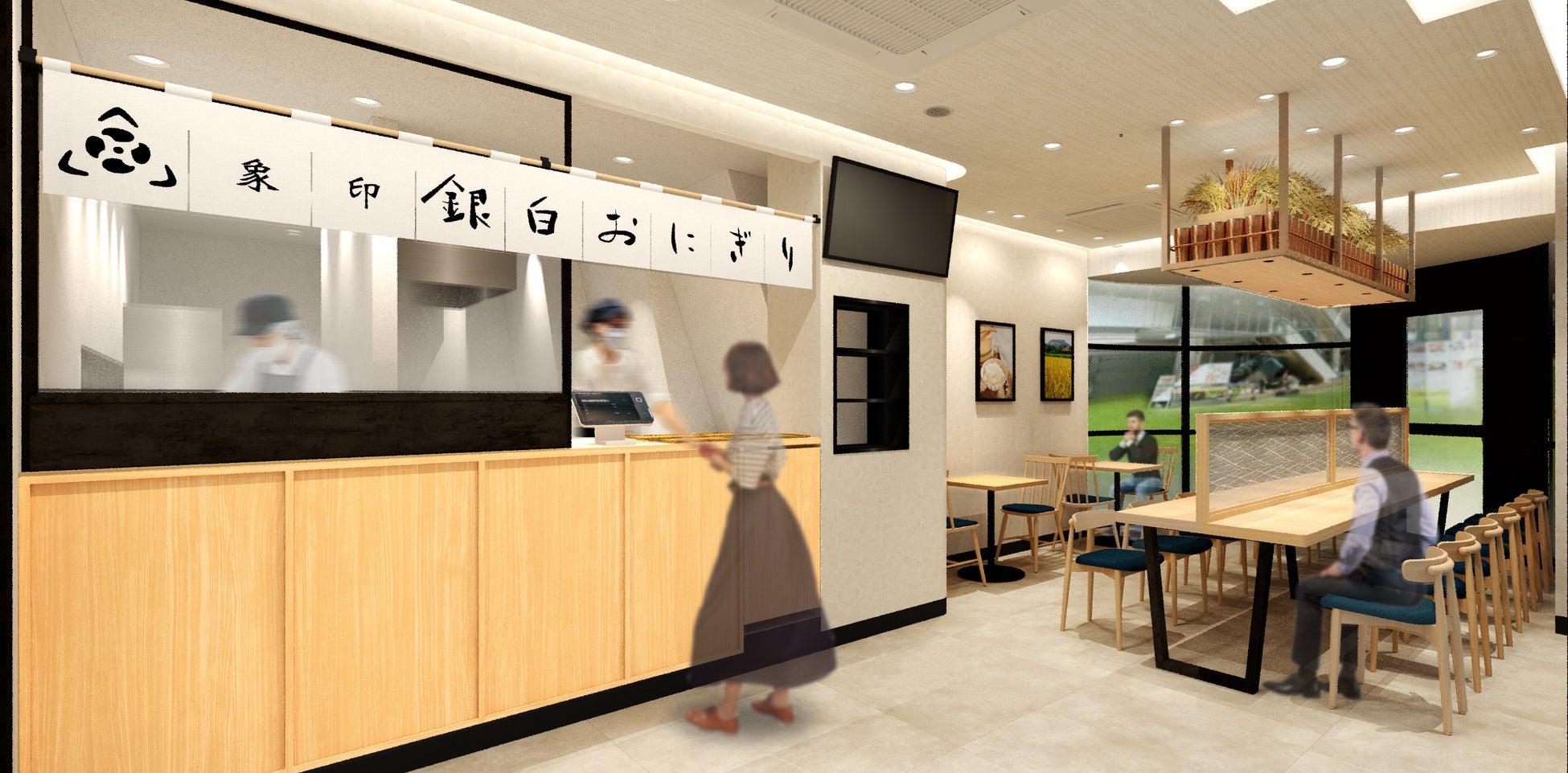 「象印銀白おにぎり 京橋店」は、当社のおにぎり専門店としては初めて、テイクアウトだけではなく店内飲食も可能となります。店内飲食の場合は注文を受けてから作り始めるので、“にぎりたて”のおにぎりをご提供します。
