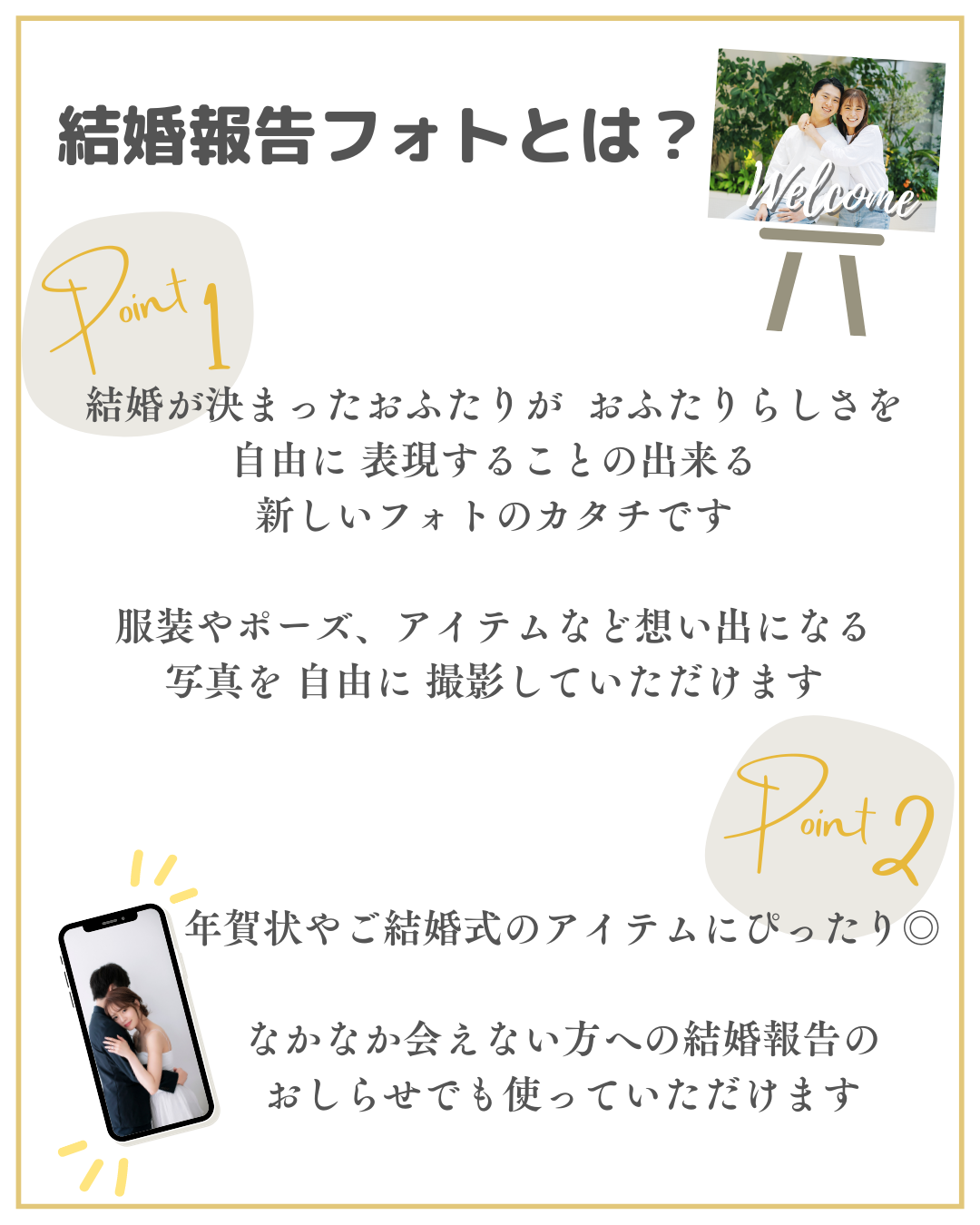 <内容> アンケートにご回答いただいた方の中から抽選で10組様に「結婚報告フォト」をプレゼントいたします。