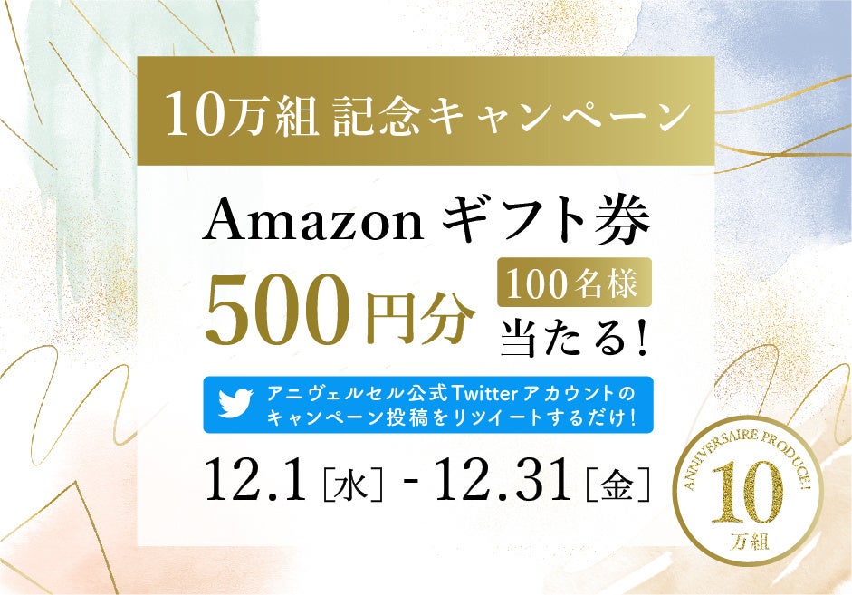 「結婚報告フォト」を抽選で10組様にプレゼント! アニヴェルセル10万組感謝祭『キセキ』記念 ~全国のアニヴェルセルにて12月24日(金)からキャンペーン開催!~